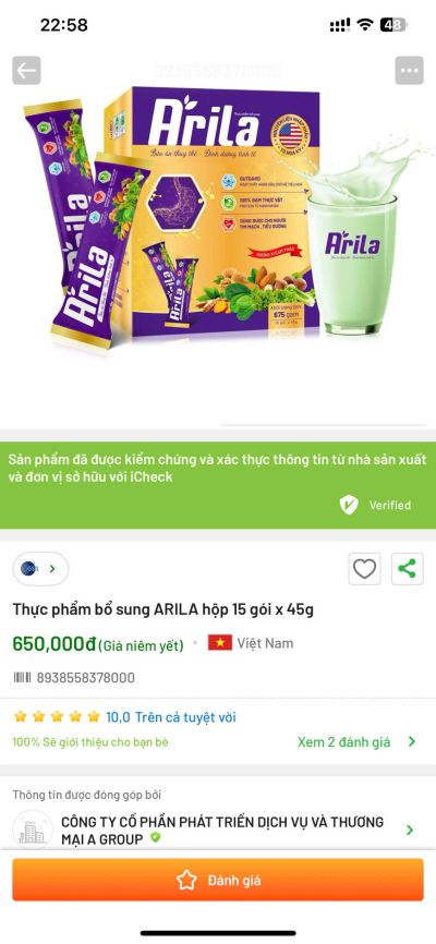Cách nhận biết bữa ăn dinh dưỡng Arila chính hãng